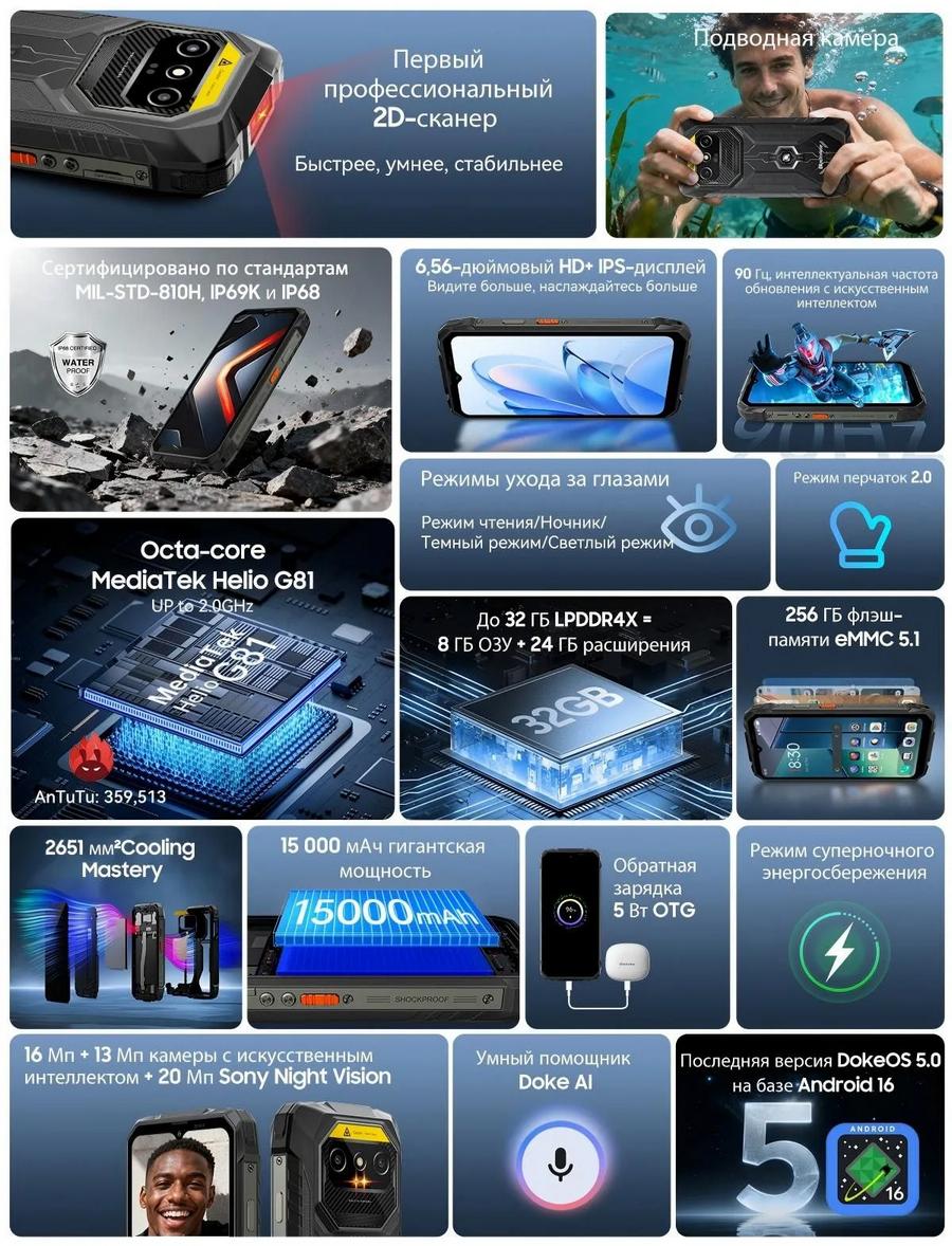 - Операционная система DokeOS 5.0 на базе Android 16 с функциями ИИ