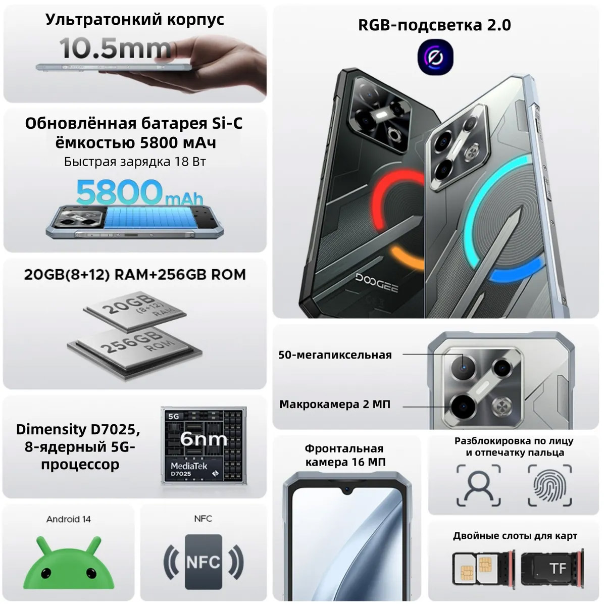 DOOGEE Blade GT Play – cверхтонкий 10.5мм защищенный IP-69K смартфон с информативной подсветкой